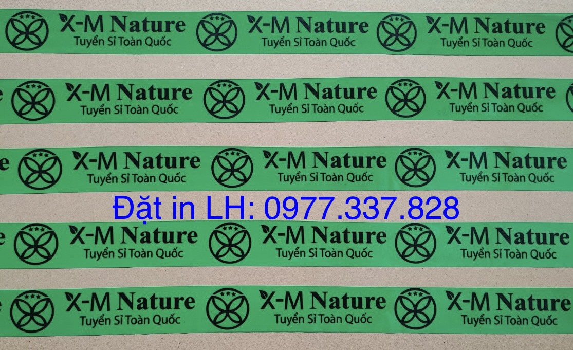 Bước 4: In nội dung lên trên màng của băng dính. Công nghệ in cũng như màu in phải đảm bảo để logo thương hiệu đúng với màu đăng ký nhận diện thương hiệu.